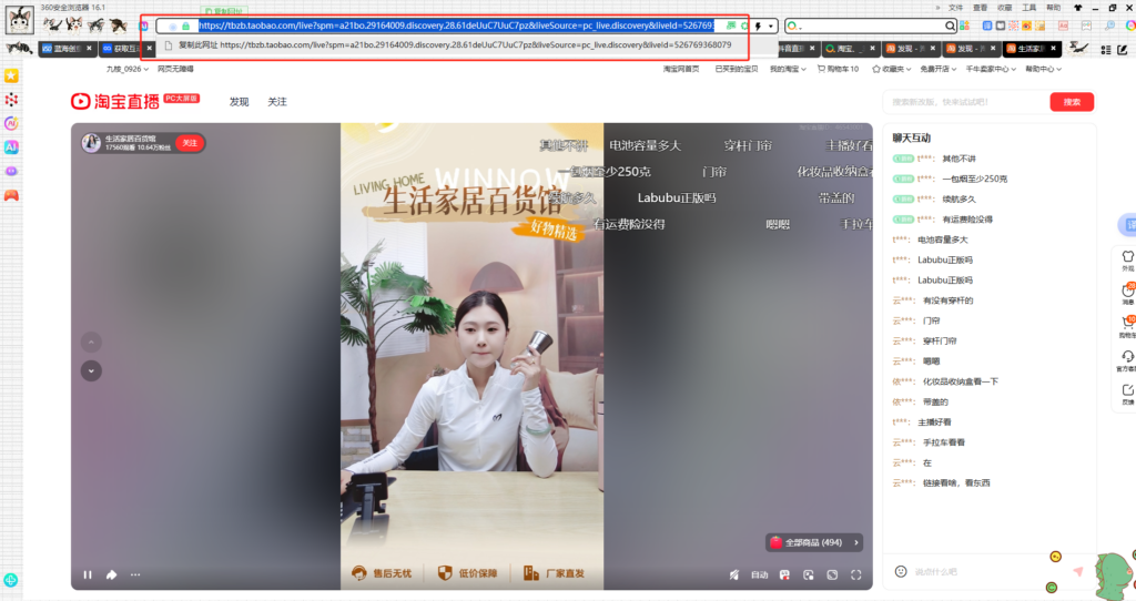 进入需要连接弹幕互动的直播间,下图为任意直播间示例,复制直播间地址