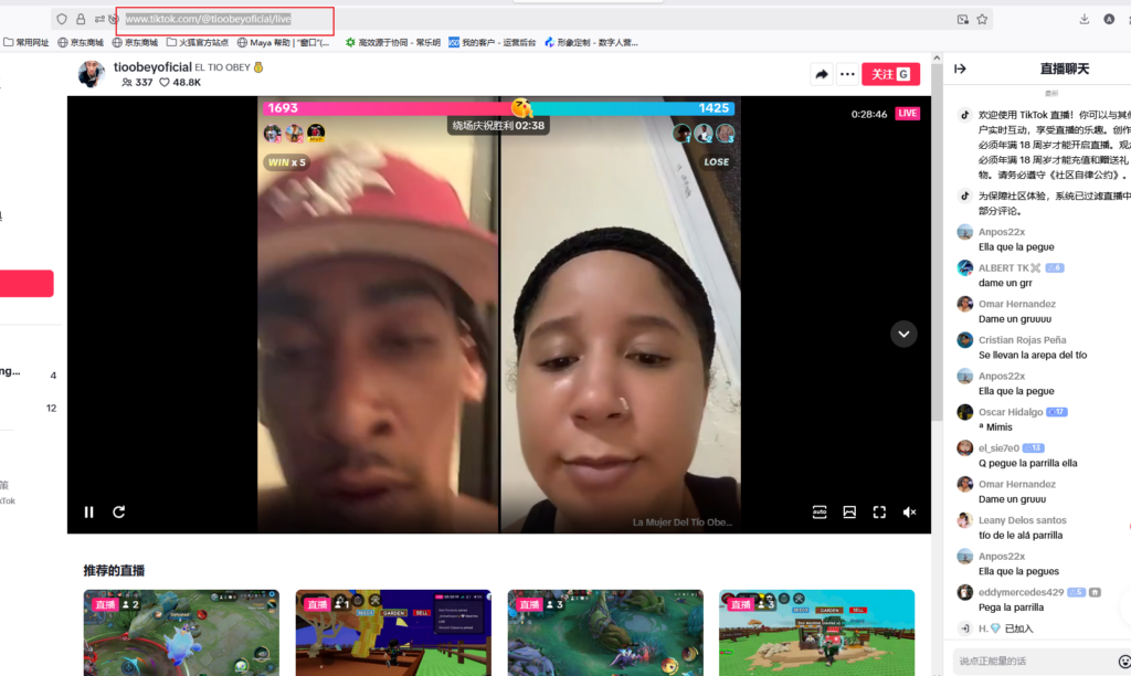 ,进入需要连接弹幕互动的直播间,下图为任意直播间示例,复制直播间地址