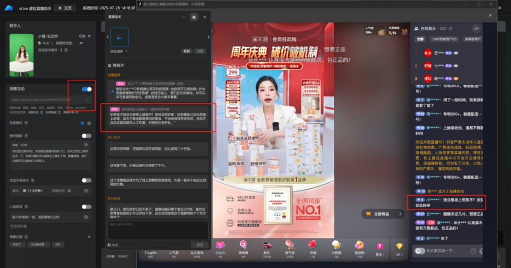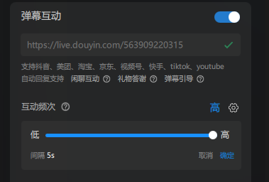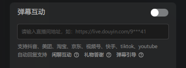目前支持多平台弹幕互动功能,以抖音平台为例,将直播间地址复制到vLive软件,连接弹幕互动