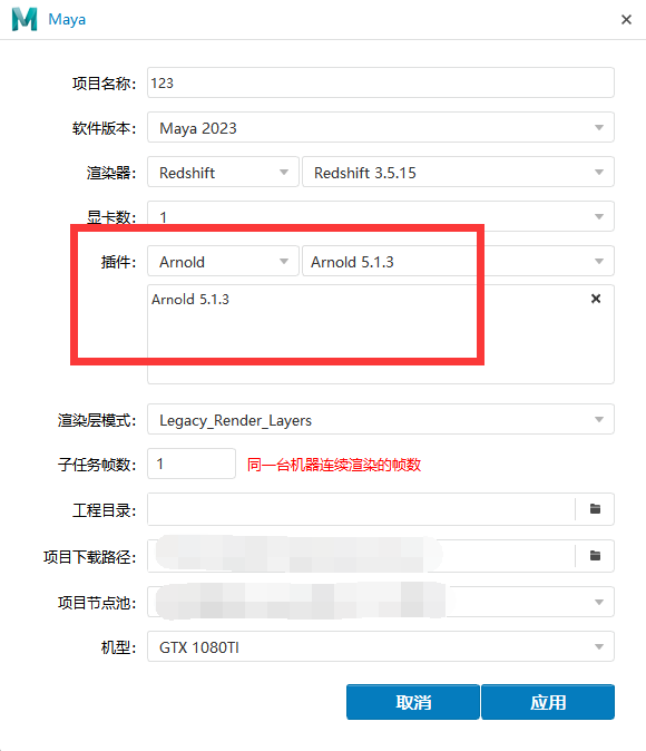 4、使用Redshift渲染器渲染Xgen,渲染日志有报以下错误,这时候可能是农场的机器在渲染的时候无法识别到别的渲染器节点,造成xgen无法读取,从而出现丢毛的情况,此时在客户端项目设置里添加和本机一样的arnold版本当做插件就行。