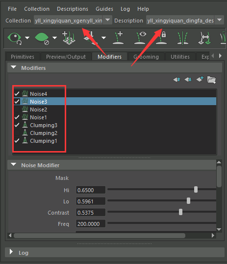 6、在以上方法都无法解决的时候,可能就是资产的问题了,接下来我们排查xgen Modifiers设置,先把抖动毛发的全部取消勾选,再次渲染如果还是抖动说明不是Modifiers的问题,如果发现不闪,说明就是Modifiers的问题。